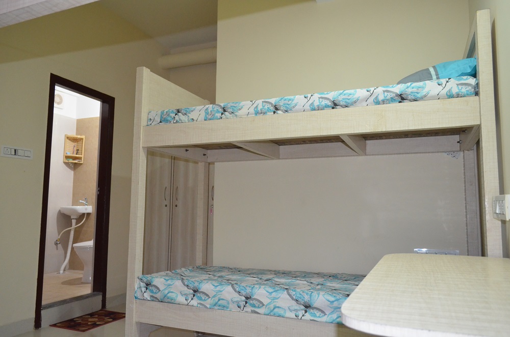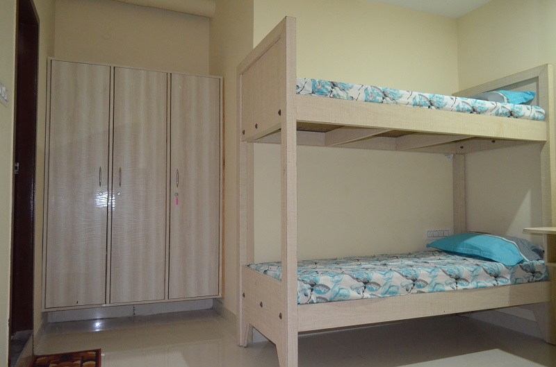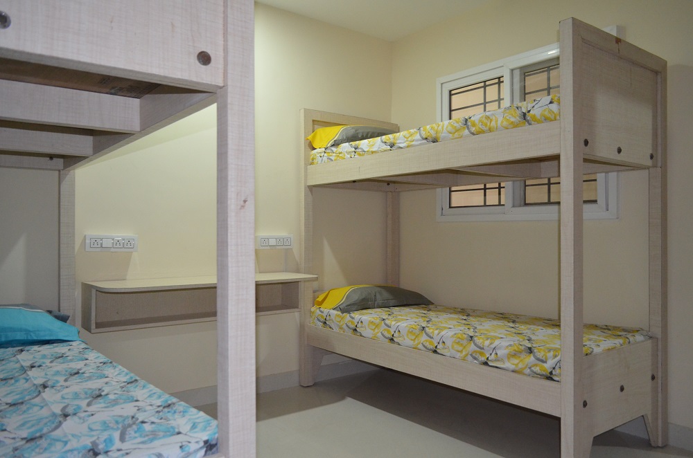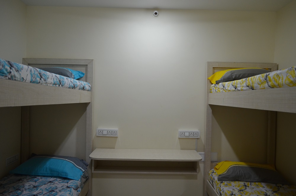 This property located in the famous food street of Mohali provides you multiple food options to fees your tastebuds. It is also very near to Lalbagh Botanical garden. Being the newest property in the area it is the best hostel you could ever stay in. The building is specially designed and built for a hostel,making it one of a kind and all things in place. The beds are custom build and equipped with an electricity socket, ensuring privacy in the shared rooms. Your valuables are safe as you have a personal wardrobe/storage space. The bathrooms are specially designed for the compact spaces. We have 50 beds divided over two, three and four bedded rooms. All rooms have a private shower, toilet, washbasin and individual wardrobe. Rates include all the facilities required for hassle free living.